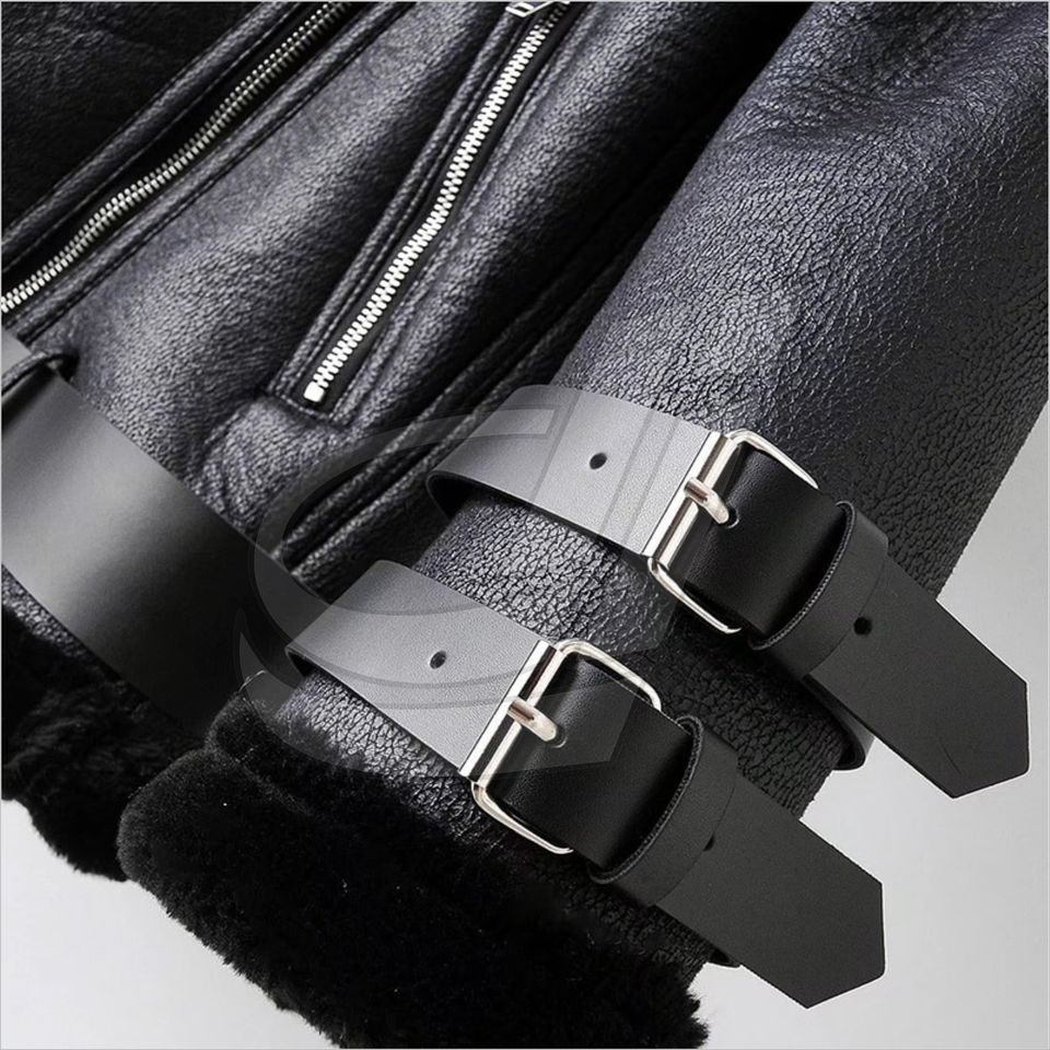 Hooded Leather Cap with Folded Sleeves and Lace Waist