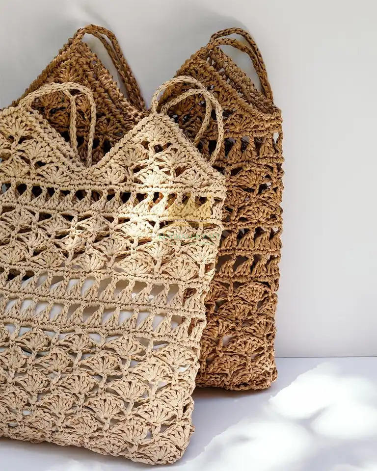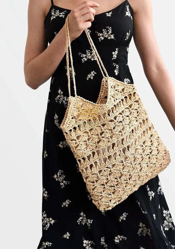 2023 HOT TREND Bohemian Handmade Straw Crochet Bag 100% Eco Material Custom Size