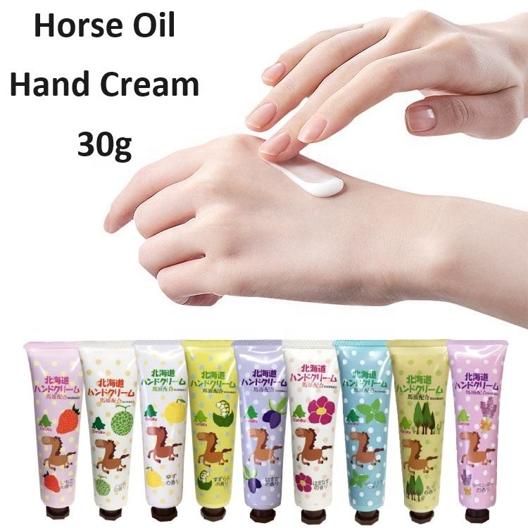 2023 Hokkaido Horse Oil Hand Cream Japan-Made 30g Hyaluronic Acid Moisturizing Lotion Nourishing Strawberry Scent Hot Selling