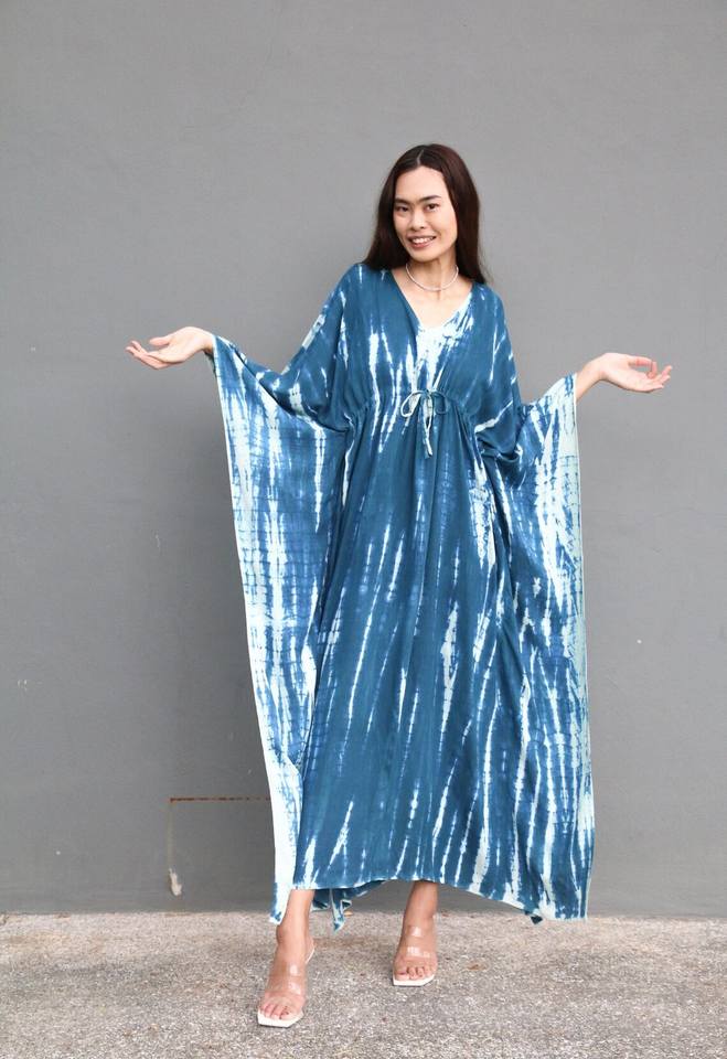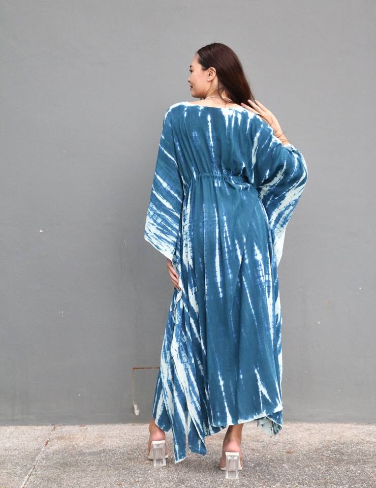 2023 Holiday Summer Beach Kaftan 100% Rayon Full Sleeve Tie Dye Handmade Bohemian Dress for Women Floor-Length Sweet Style