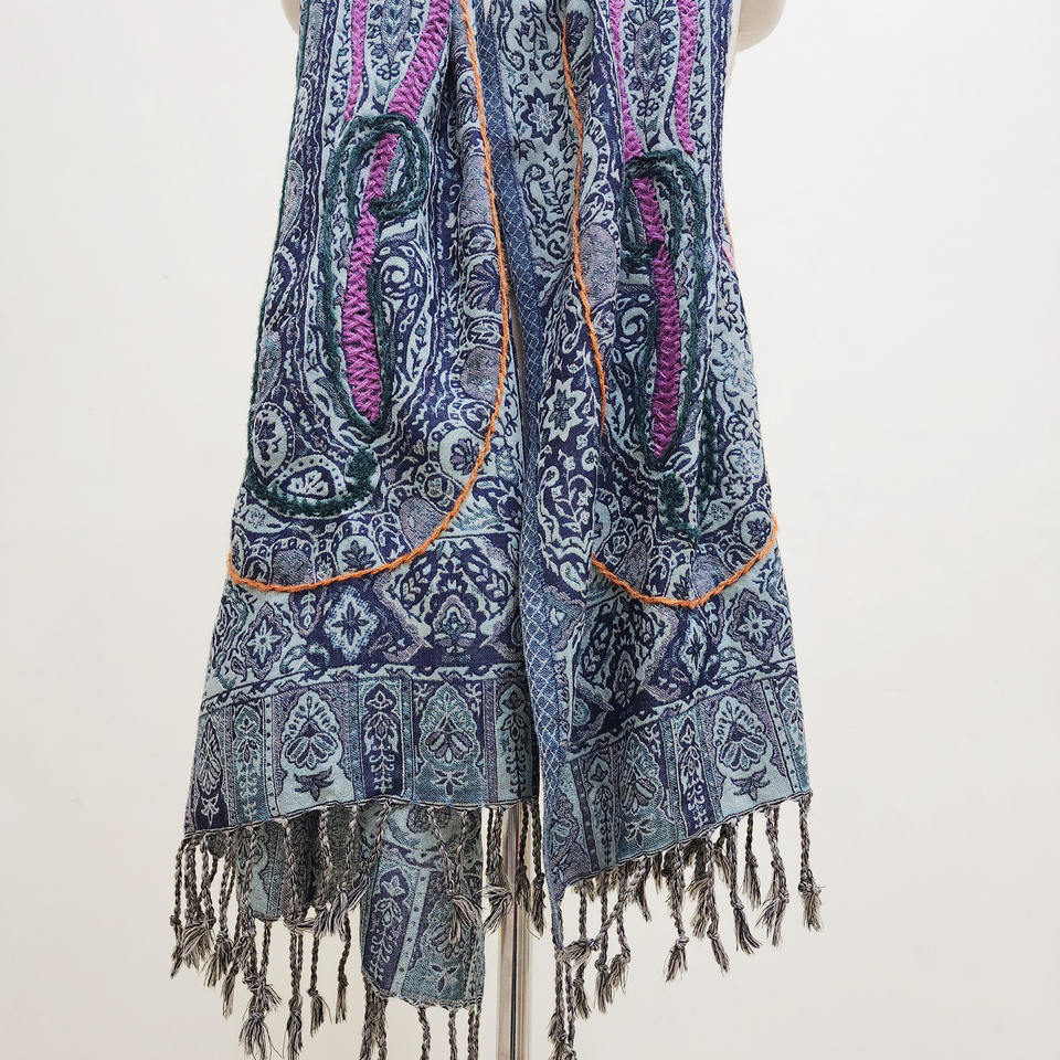 2023 Hot Sale Winter Wool Shawl Women Girls Warm Wear Hand Embroidery Jacquard Floral Design Organic Dye Boiled Finish Benedetto