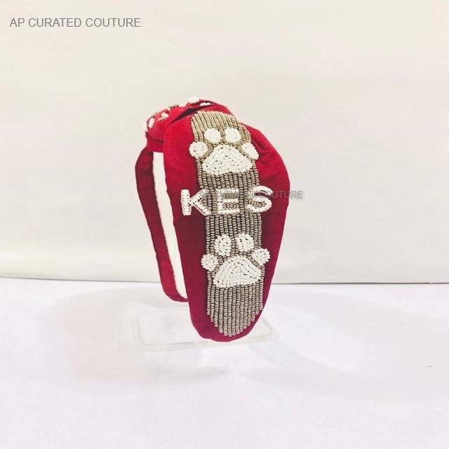 2023 Hot Selling Custom Themed Knotted Headbands Indian Rice Beaded Hair Accessories with Crystal Beads Exclusive Team Headband