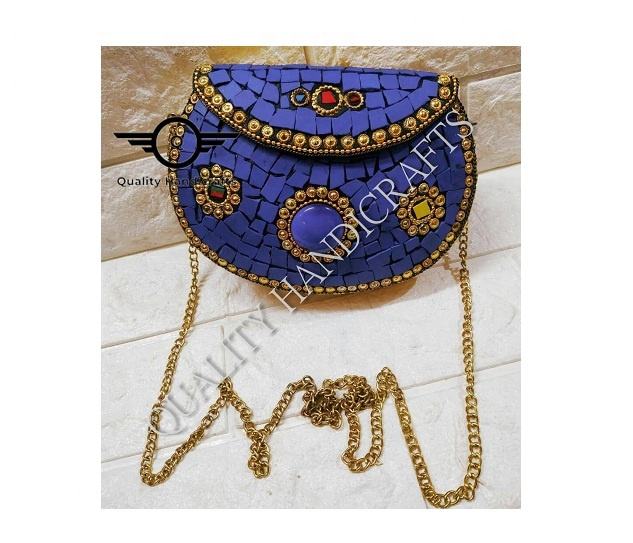 2023 Hot Selling Women Summer Beach Metal Round Hand Handbag / Clutch Bag /ladies Purse From India by Quality Handicrafts