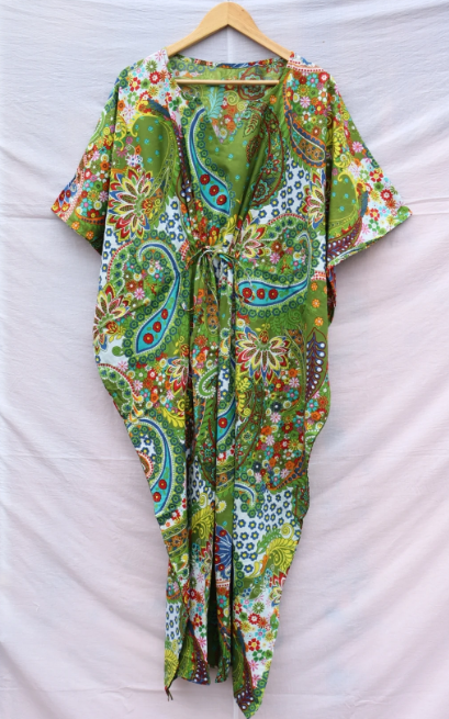 2023 Latest Design Indian Cotton Floral Printed Women's Wear Summer Maxi Dress Long Kaftan Ethnic Handmade Sleepwear Caftan OEM