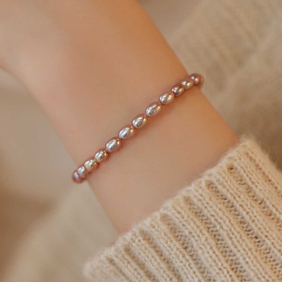 SL3-1 [All Rice Beads] Pink Purple Pearl Bracelet