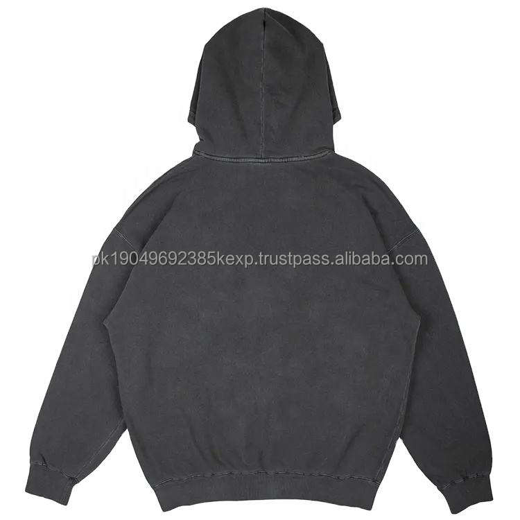 2023 Men's Women Hoodies Black Cotton Heavyweight Hoodie Custom Distressed Acid Wash Vintage OEM Service Plain Dyed Technique