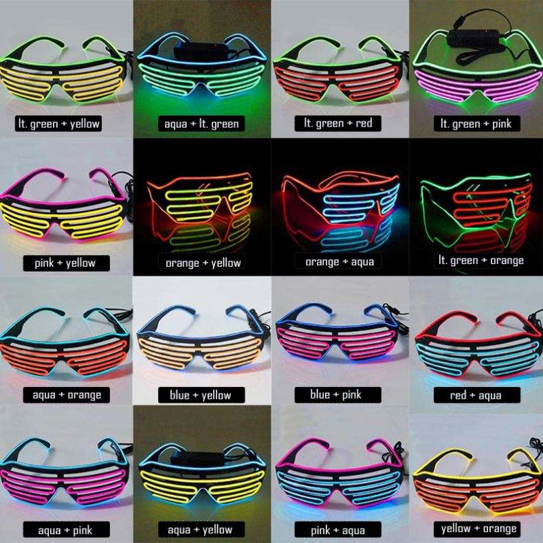 Multi-Color LED Shutter Glasses Neon Rave Glow with AA Battery Pack for Parties & Fancy EL Products