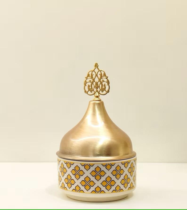 2023 New Arrival Silver Lid Premium Design Handcrafted Tableware Brass Metal Date Bowls Gold Plated Solid Table Decor Usage