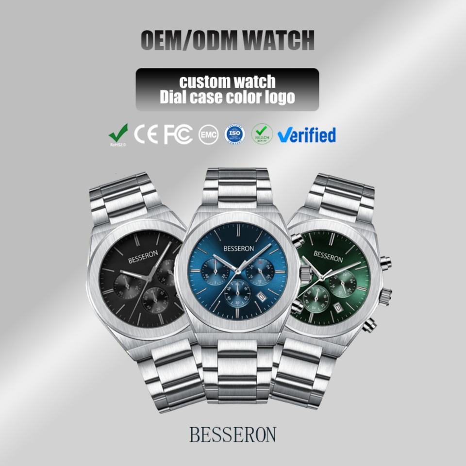2023 New Arrivals Fashion Men's Stainless Steel Quartz Watch 5ATM Waterproof Leather Band Sports Wholesale OEM ODM