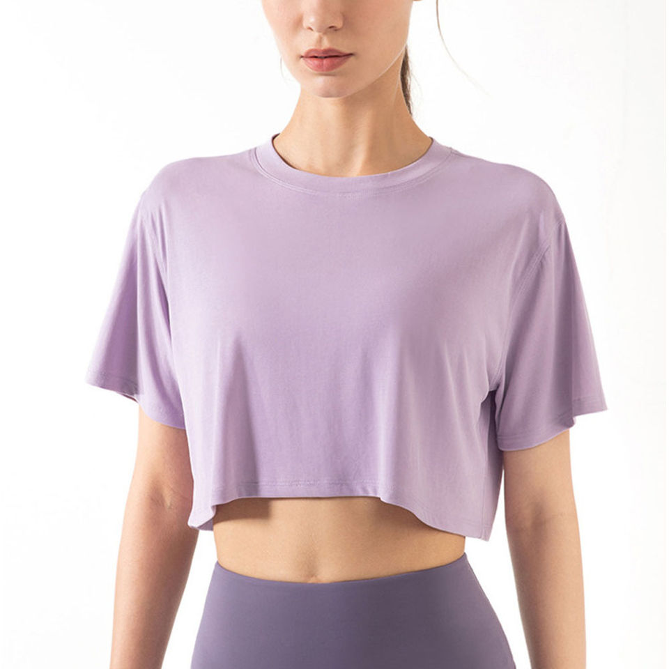 2023 New Custom Design High Quality Women Crop Top T Shirts Wholesale Low Price Women's Crop Top T Shirts Light Purple Dyed