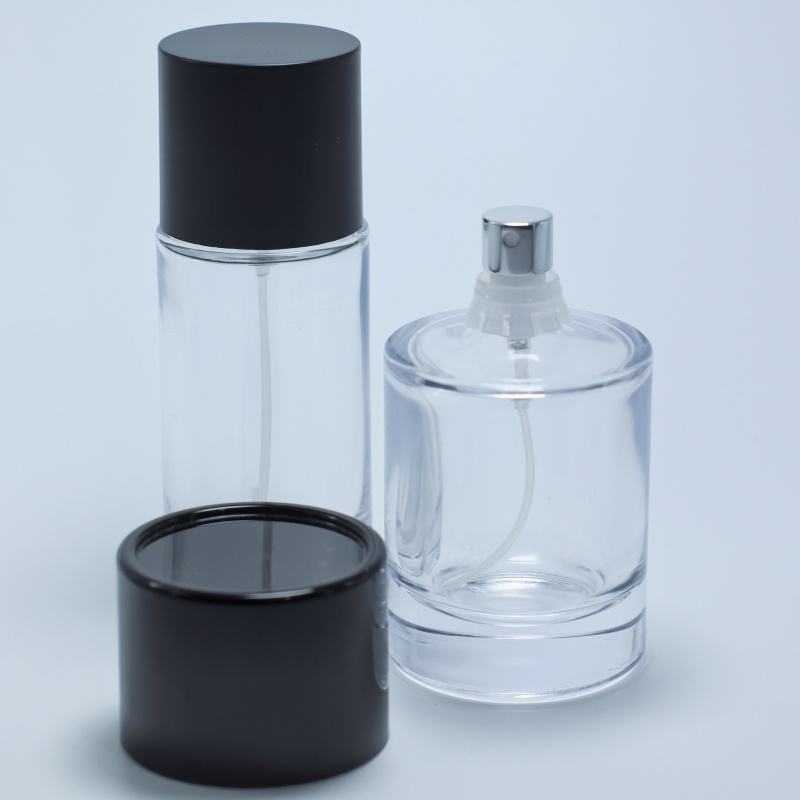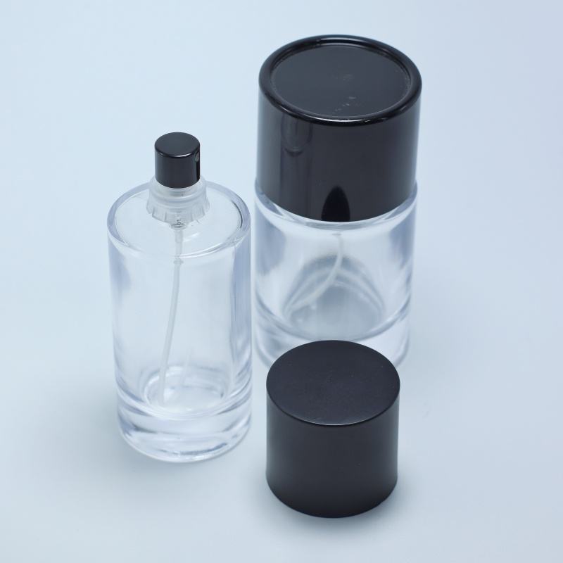 2023 New Design 30ml 50ml 100ml Crimp Perfume Bottle Round Perfume Glass Bottle With Black Cap