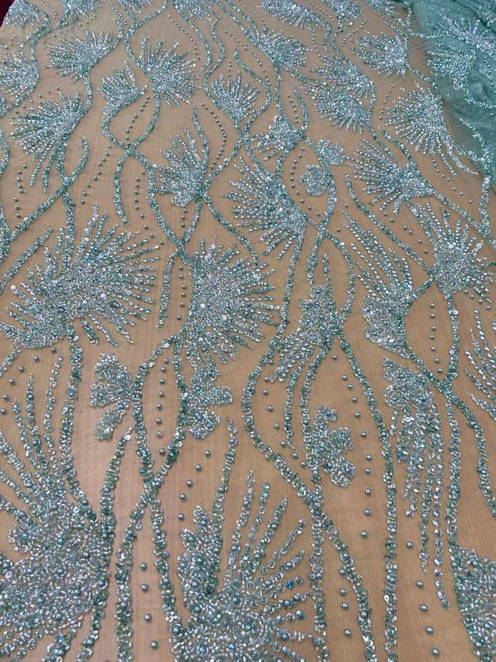 2023 New Design Blue African Beaded Luxury Lace Fabric with Sequins Crystal Material for Wedding Dresses in Dubai