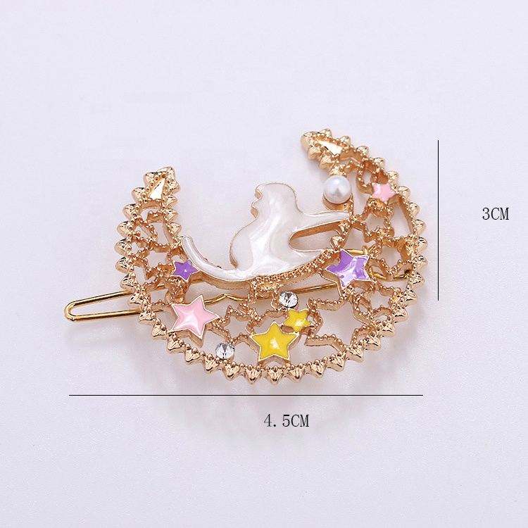 2023 New Kids Hair Clip Moon Cat Simple Star Shape Hair Clip Holiday Alloy Hair Accessories Wholesale