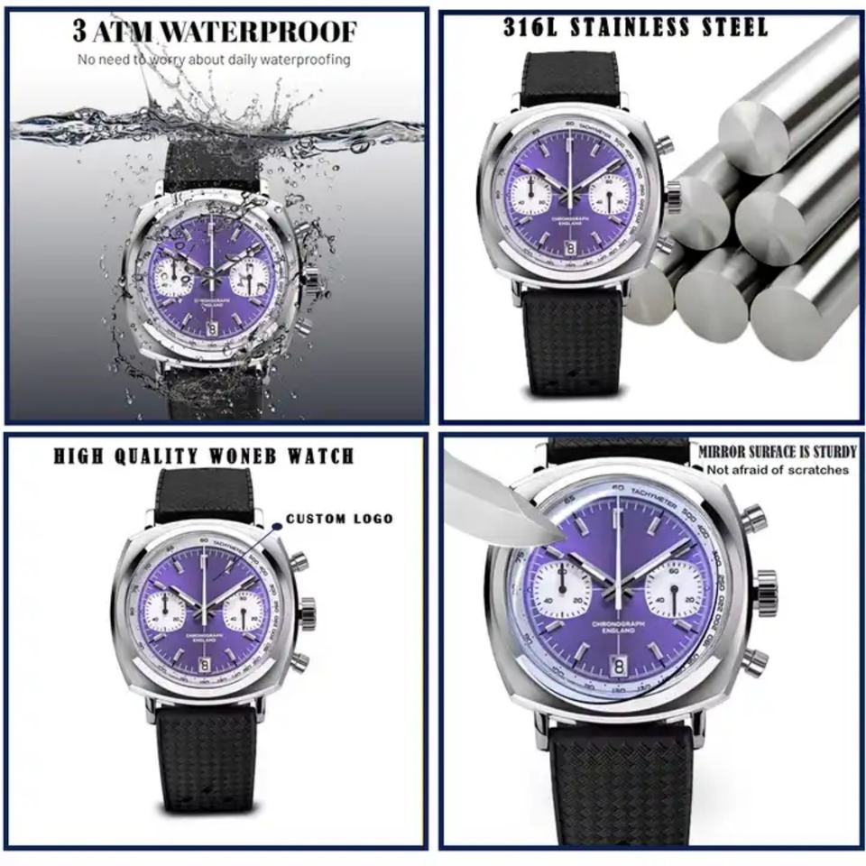 2023 New Luxury Quartz Skeleton Watch Custom Diver 42mm Sunray Dial Movement Leather Band Direct Factory Supply