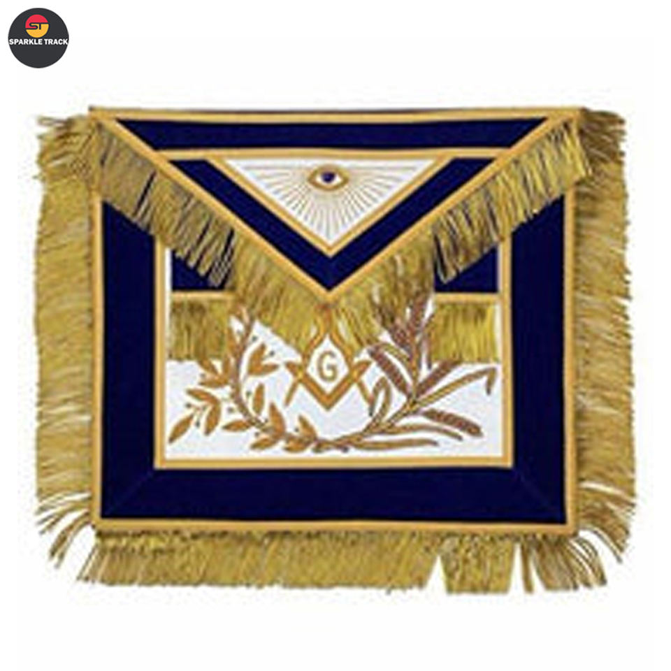 2023 Customized Size High Master Mason Apron Chenille Embroidered Fringe Sequins Machine Embroidery New Blue Lodge Fabric New