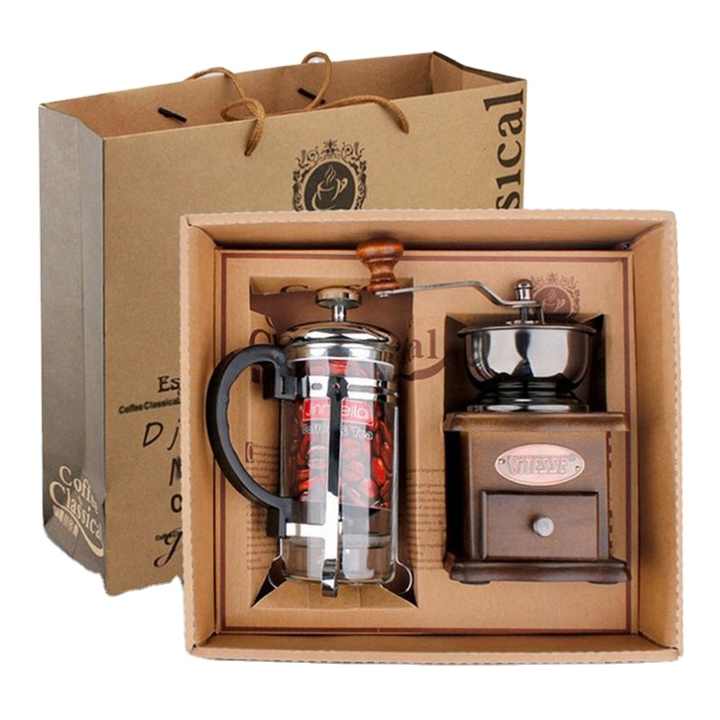 2023 New High Quality MAXFREE Luxury French Press Pot Grinder Pink and Blue Custom Logo Wedding Favors Men Gift Set