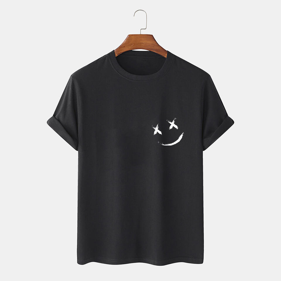 2023 New Slim Fit Men Cotton/Polyester Breathable Quick Dry Short Sleeve Plain Lightning Patchwork Summer Casual Loose T-Shirt