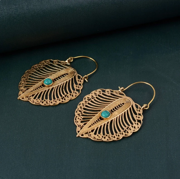 2023 New Solid Brass Tribal Ethnic Earring in Natural Turquoise Gemstone with 18k Gold Plated and Silver Plated for Women
