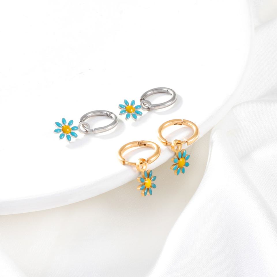2023 New Stainless Steel 18K Gold Bohemian Colorful Daisy Flower Jewelry Set Multi-Chain Necklace Bracelet Earring