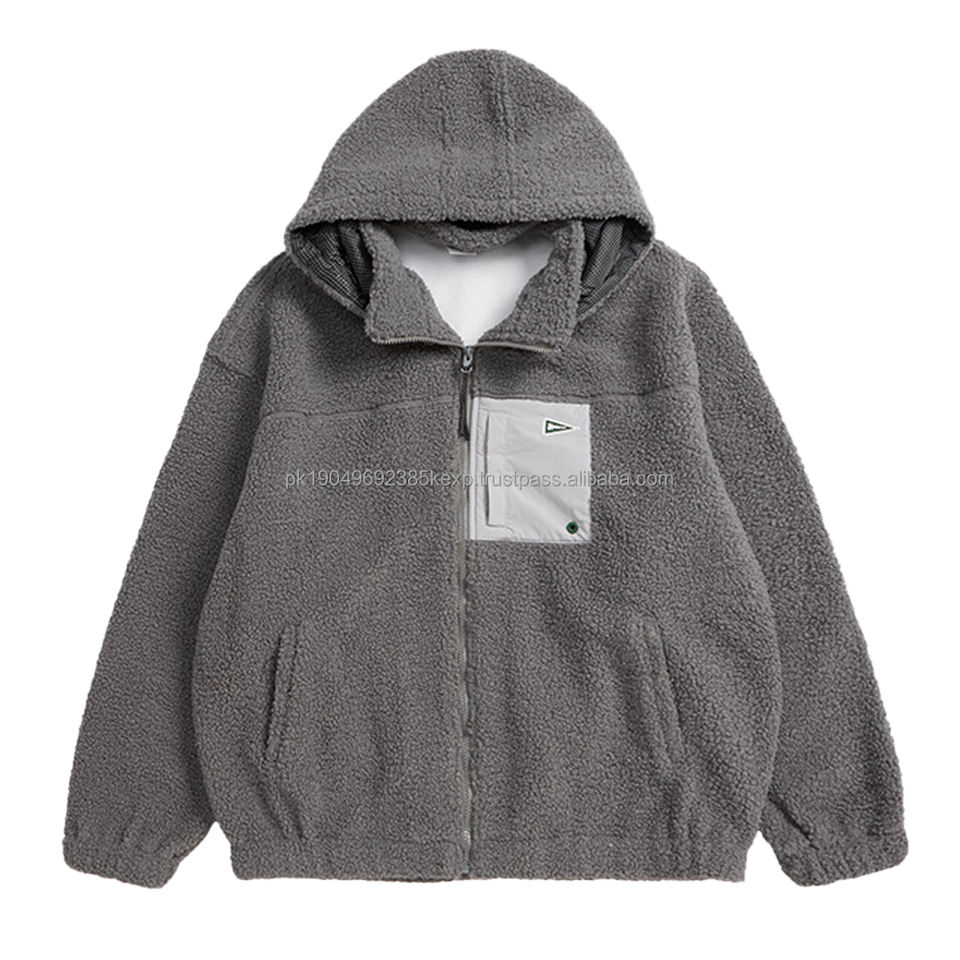 2023 New Style Heavyweight 100%polyester Unisex Coat Oversized Zip up Hoodies Wholesale Blank Varsity Lamb Velvet Jacket