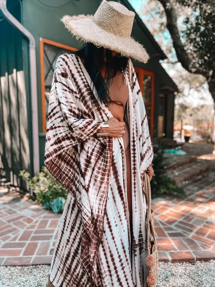 2023 New Summer Women's Long Sleeve V-Neck Tie Dye Kimono Robe Floor-Length Beach Cover-Up Washable Directly Manufacturers India