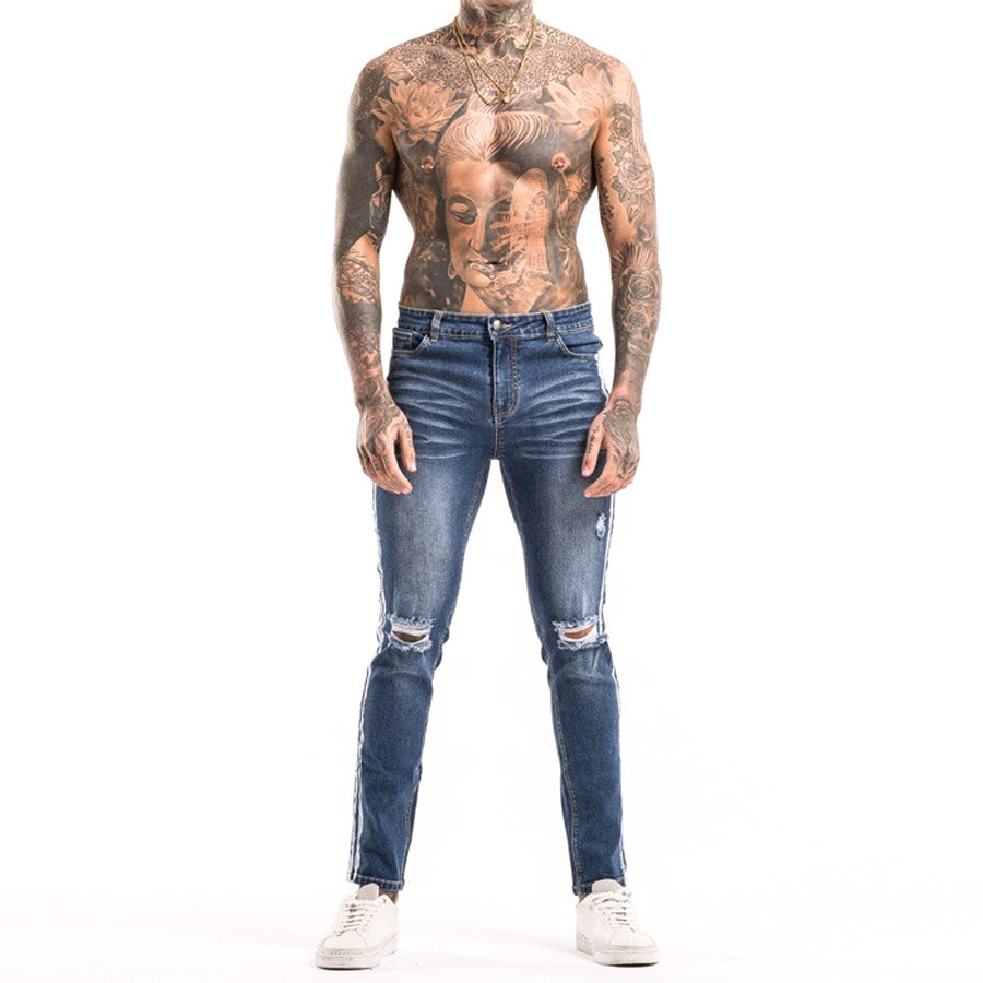 2023 New Wholesale Brand White Stripes Ripped Denim Slim Fit Wear Jeans Fabrics Bulk for Men