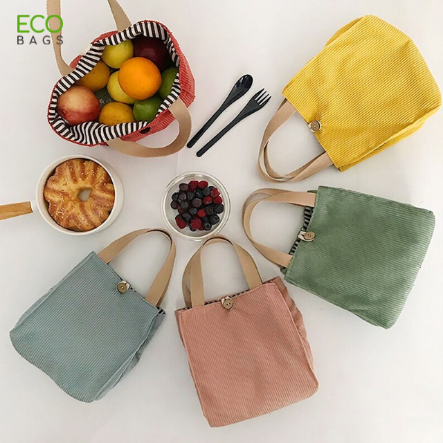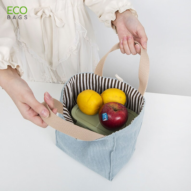 2023 ODM OEM Corduroy Lunch Bags Factory Price Made in Vietnam Polyester Material for Office and One-Person Picnics