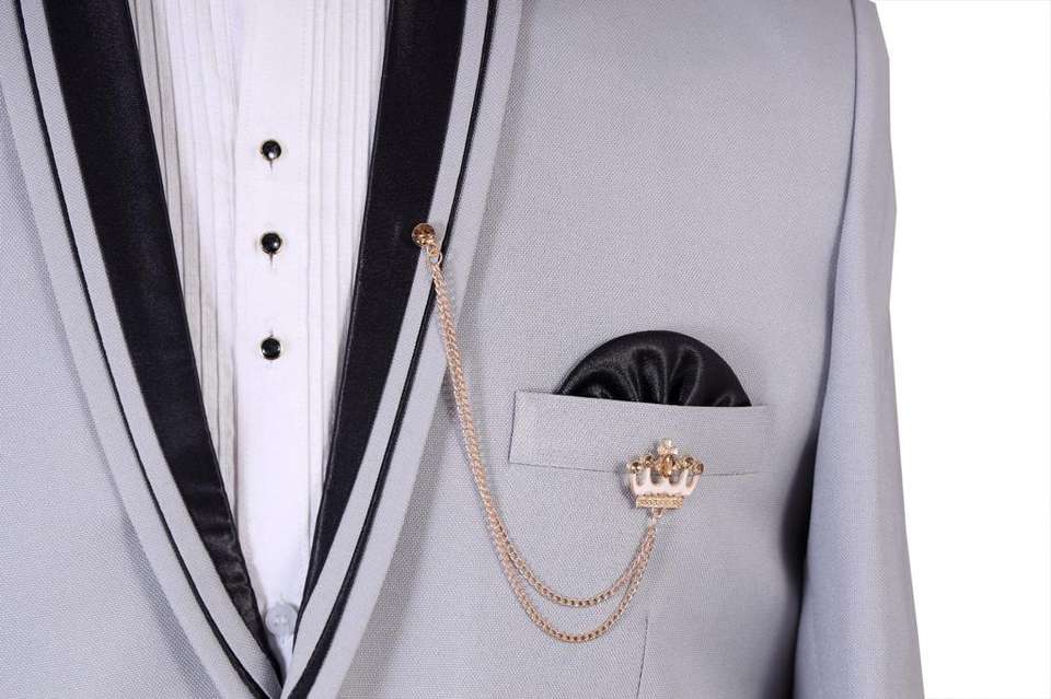 2023 OEM Men's Slim Fit 2 Piece Suit, One Button Solid Jacket Pants Set with Tie Men's Suits Navy Blue Stripes
