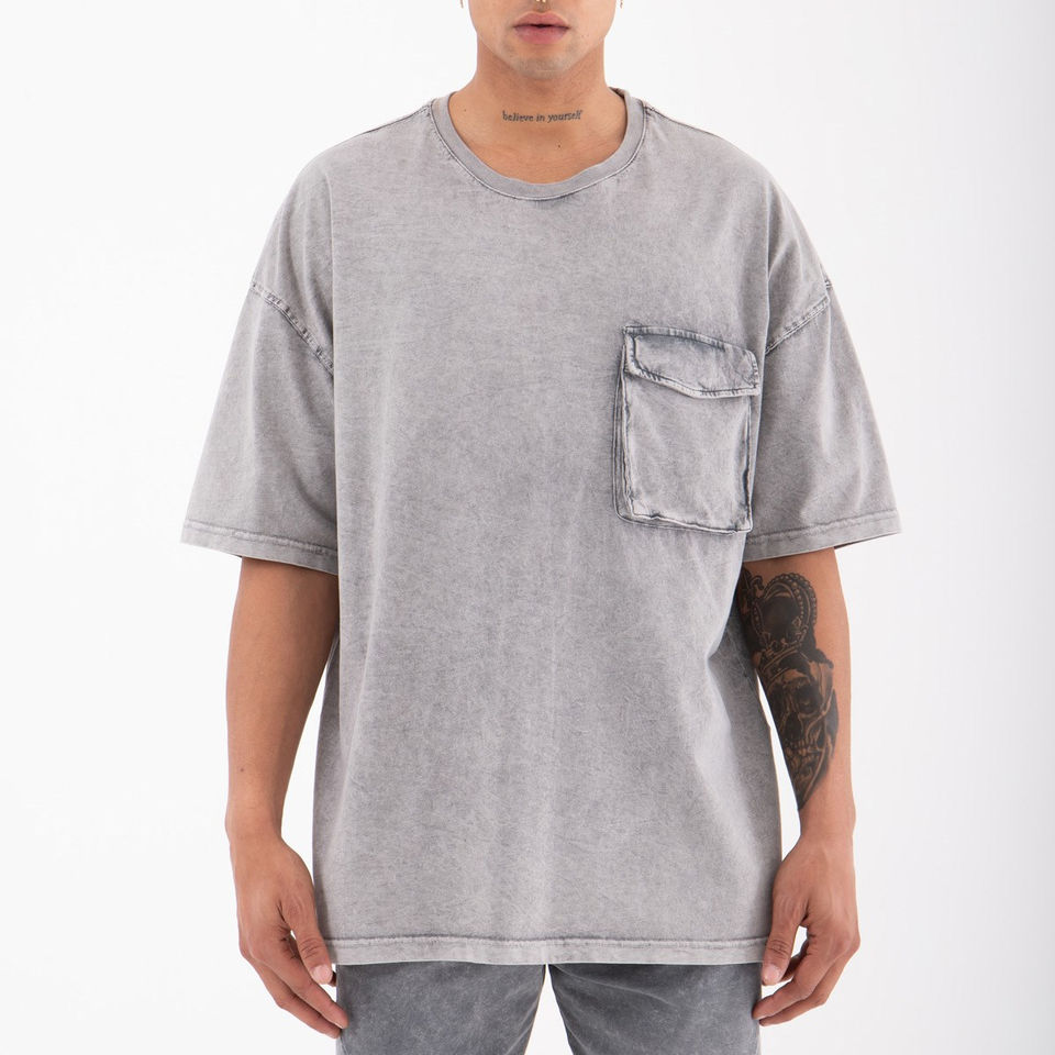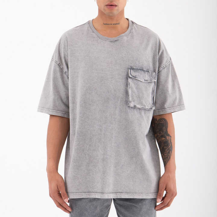 2023 Oversized Drop Shoulder Chest Pocket T-Shirt 100% Cotton Custom Printed Men Casual Urban Streetwear High-Quality OEM Item