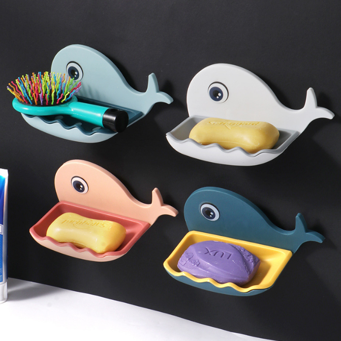 2023 SY Bathroom Kitchen Wall Mounted Shelf with Strong Adhesive Cute Punch-Free Tray Whale Soap Holder