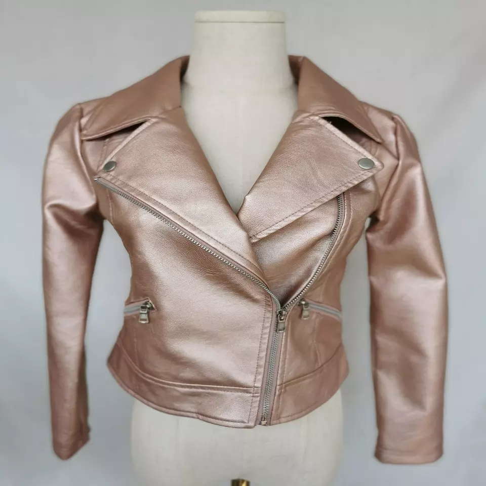 Spring Autumn Children Boy PU Leather Coat Lady's Fashion Long Sleeve Black High Quality Baby Girl Leather Jacket