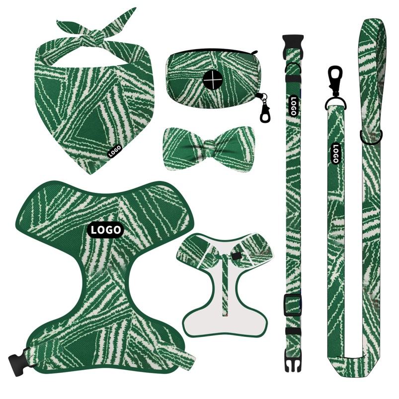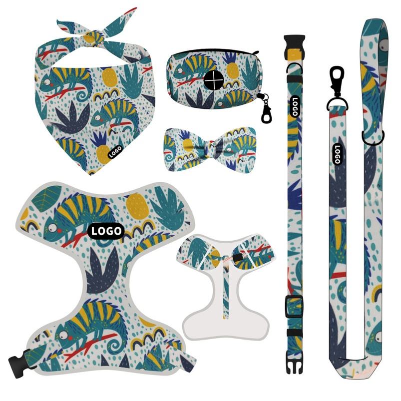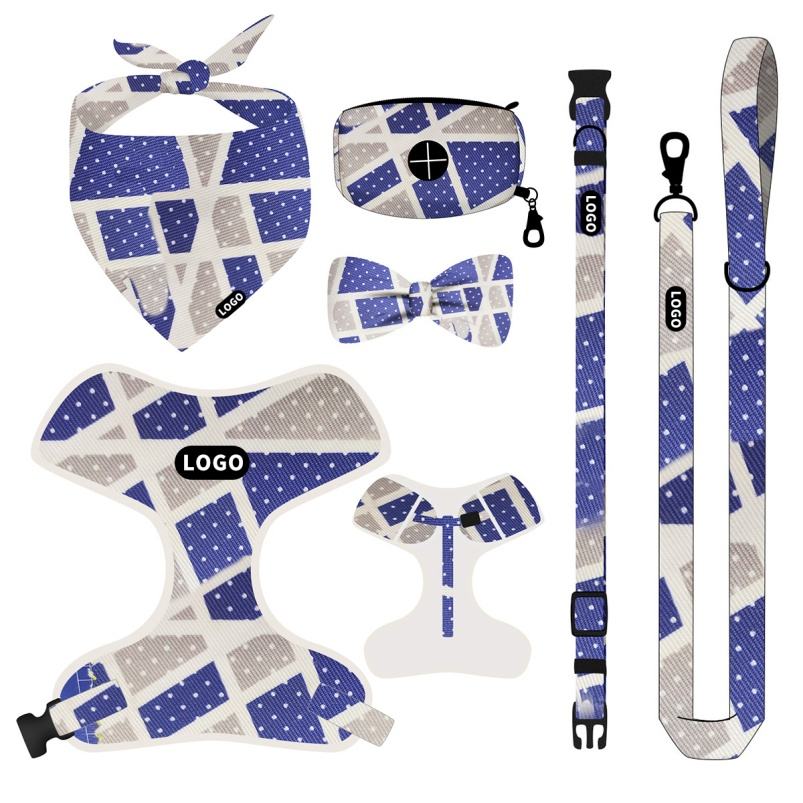 Keyword:Custom Dog Harness collar leash bowknot Poop Bag Bandana set