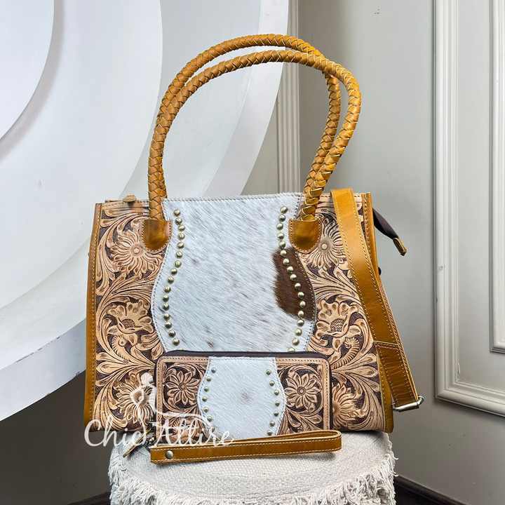 Product name:Hand Tooled Cowhide Leather 2 Pieces Combo Set