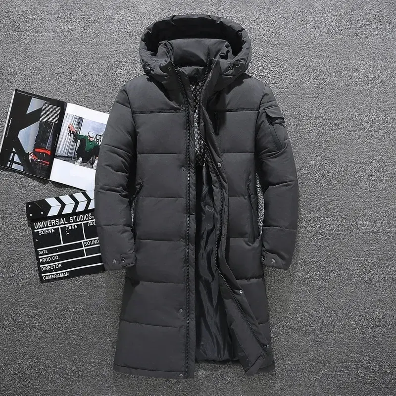 2023 Winter Men's Down Jacket High-quality Thick Thermal Waterproof Long Parka Coat Men's White Duck Down Hooded Jacket 5XL - Bl