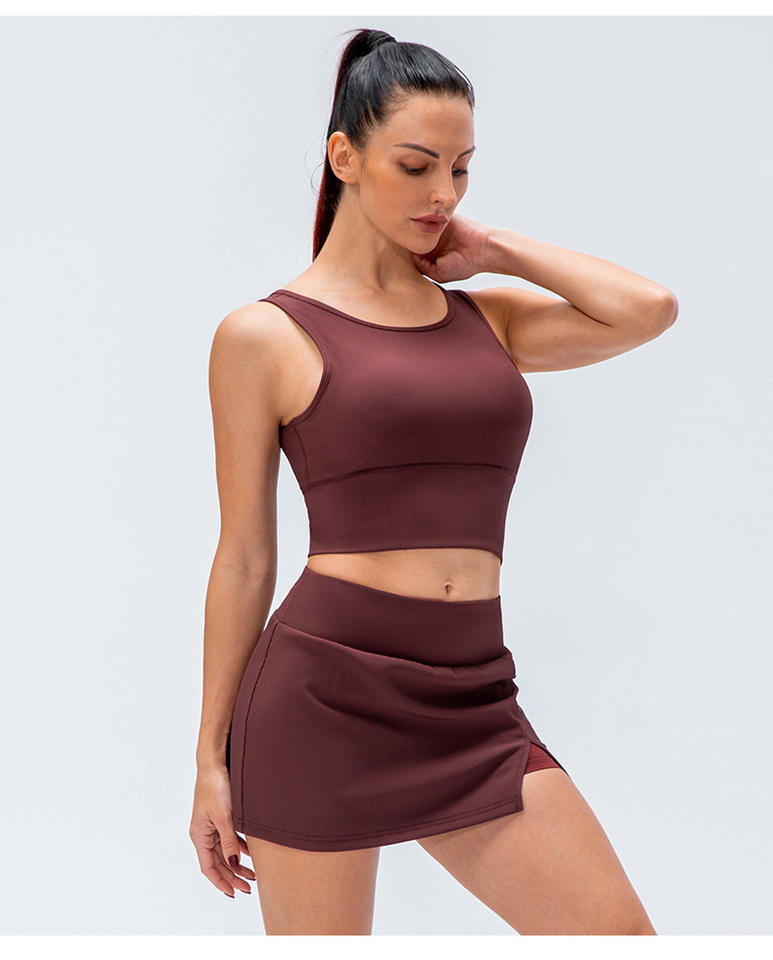 2023 Women Sexy Summer Athletic Crop Tank Top Tennis Mini Two Piece Slim Fit Solid Yoga Skirt Set Spandex Nylon Custom Brand