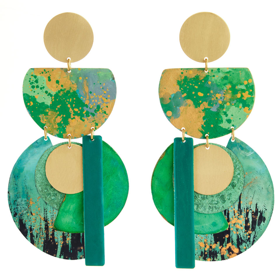 2024 Alaska Textured Halloween Elegant suit earrings gold Casting Gold Plated green brass geometric Geometrically