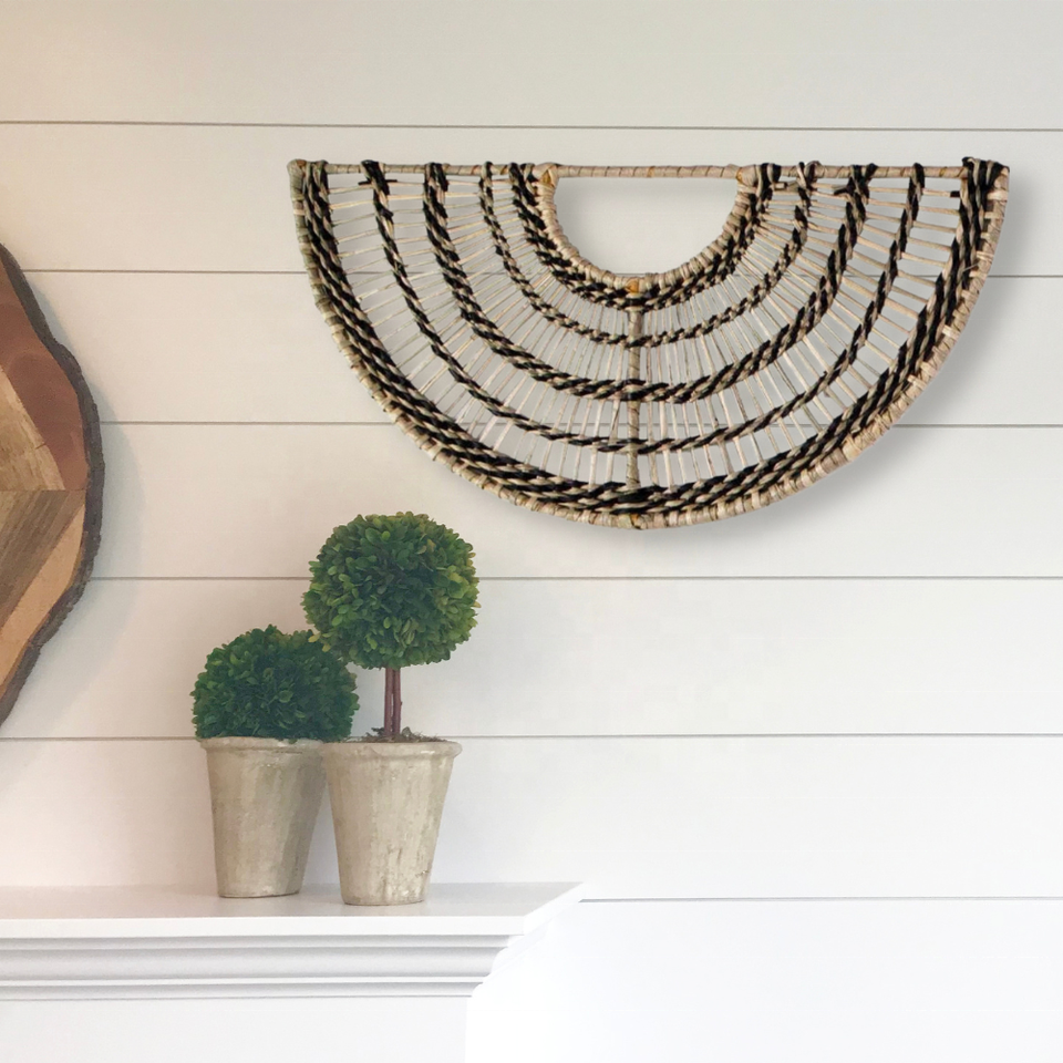 2024 for Hot Selling Rustic Seagrass Wall Fan Rustic Seagrass Wall Hanging Decor Raffia Farmhouse Boho Wall Hanger Accent