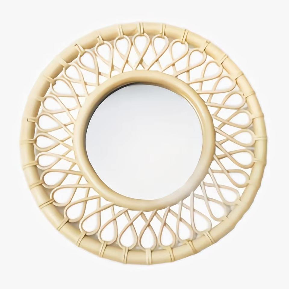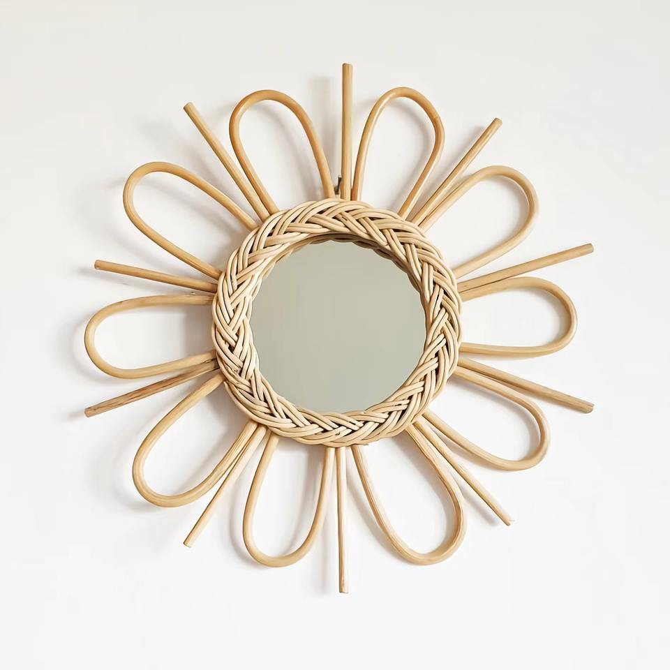 2024 Arrival Modern Antiqued Round Wood Framed Decorative Wall Mirror Rattan Hanging Design