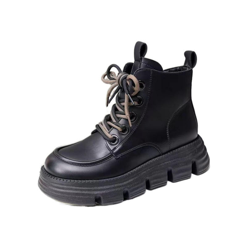 2024 Autumn New British Style Women's for Martin Boots Soft Leather Thick-Soled Height-Enhancing Single Boots Black Velvet Boots