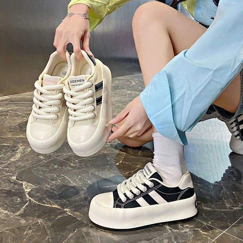 2024 Autumn New Casual Sports Shoes Thick-Soled White Canvas Trendy Shoes Genuine Hot-Selling Biscuit Campus Shoes