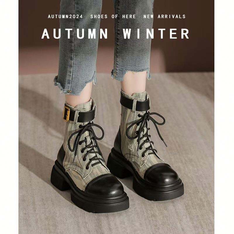 2024 Autumn New Single Boots for British Women Zipper Platform High Heels Height Increasing Booties