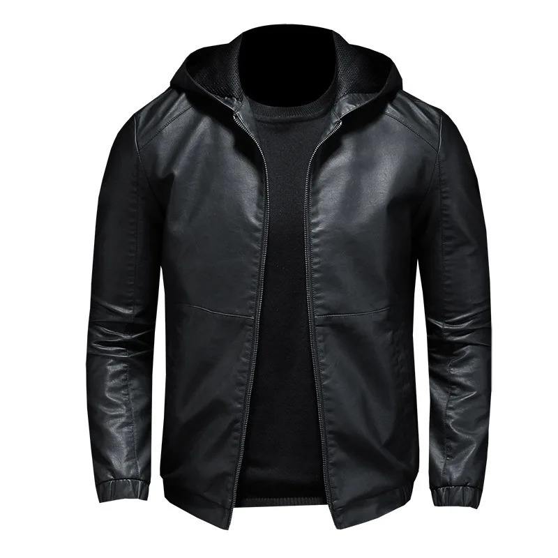 2024 Autumn Winter Men's Punk Leather Coat Stand Collar Motorcycle Jacket for Teenagers Canvas Fabric
