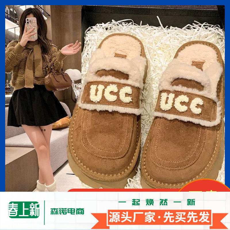 2024 Autumn Winter New Fashion Fur for Slippers for Women Thick-Soled Snow Boots with Half-Slip Casual Closed-Toe Cotton Shoes