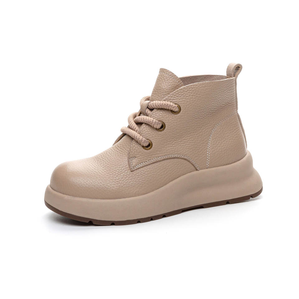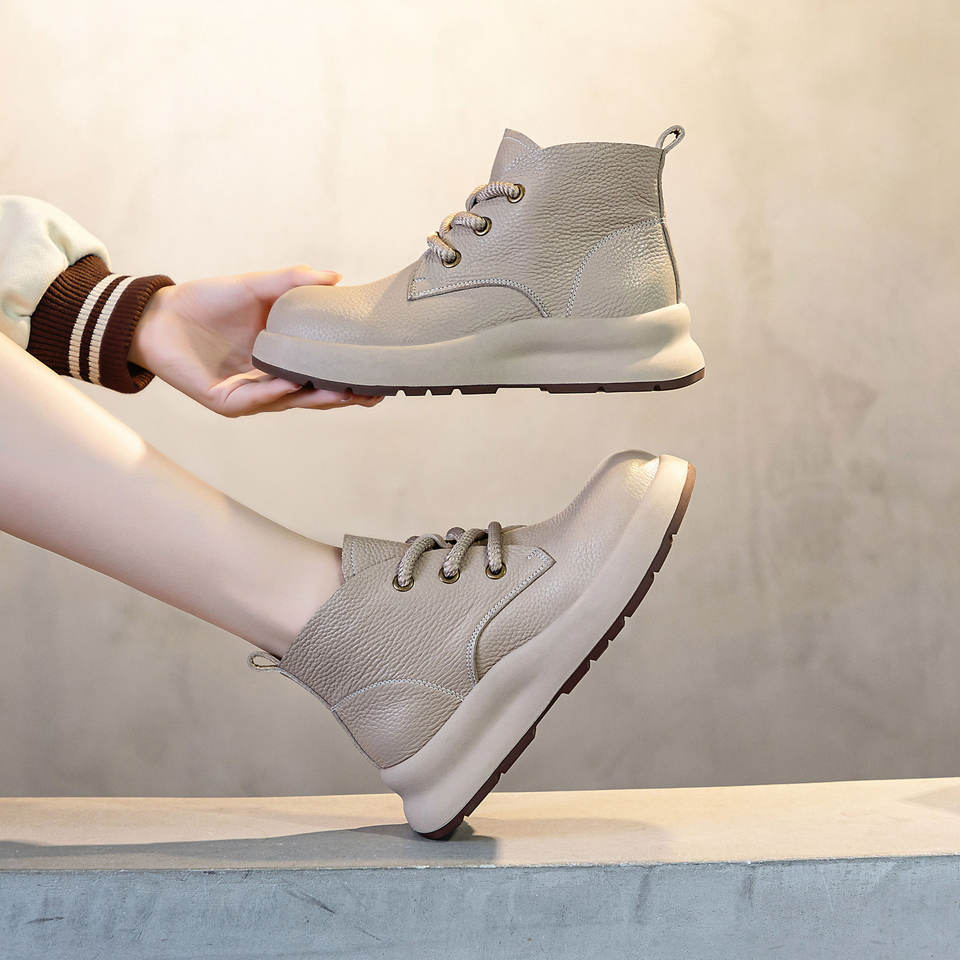 2024 Autumn Winter Women's Genuine Leather High-Top Sneakers Top-Layer Cowhide Flat-Soled Lace-Up Sports Fitness Walking Shoes
