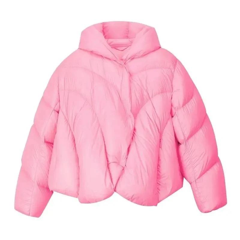 2024 Autumn Winter Women's Loose Short Casual Thin Single-Breasted Puffer Coat Solid Color Jacket Stand Collar Printed Nylon