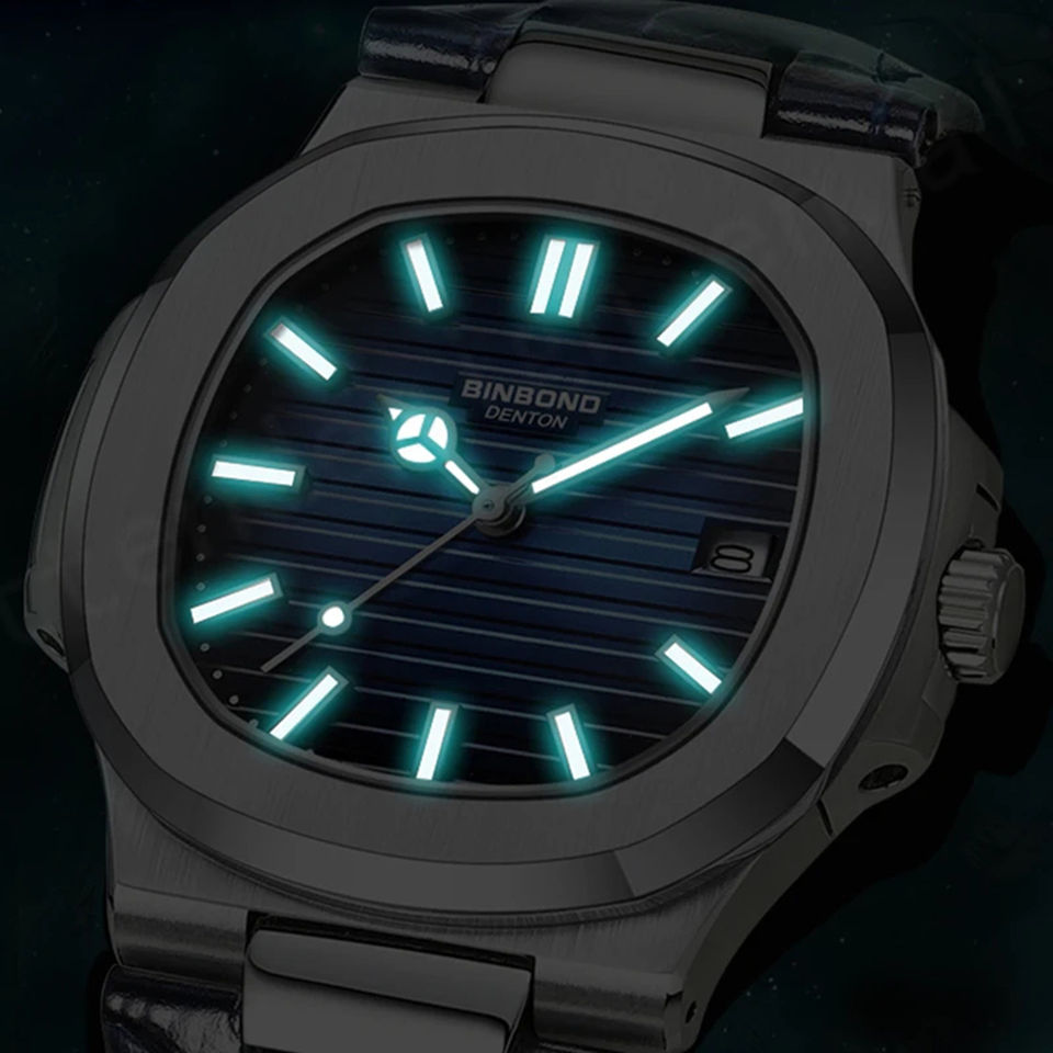 2024 BINBOND 1885 Leather Wristwatch Case Mens Watches Fashion Calendar Quartz Waterproof Luminous Watch for Men Reloj Hombre
