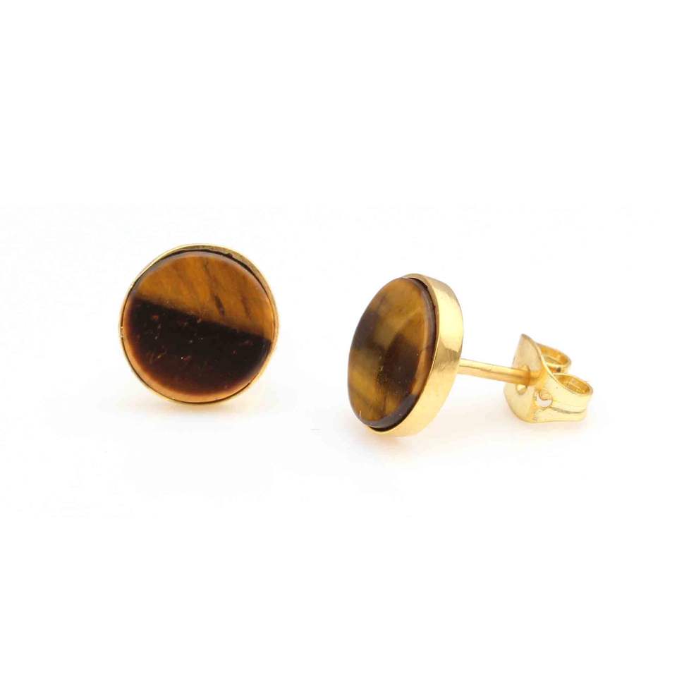 2025 Best Quality 9mm Sterling Silver Tiger Eye Gemstone Stud Earring Gold Plated Cute Women's Jewelry Gift for Trendy Girls