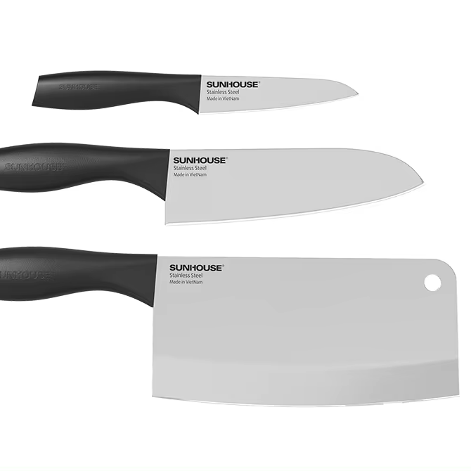 2024 Best Selling Eco-Friendly 3-Piece Stainless Steel Knife Set Handcrafted in Vietnam Sunhouse KS-KN3E1 for Families