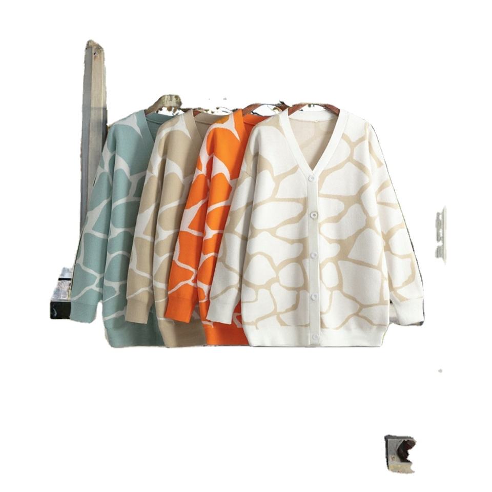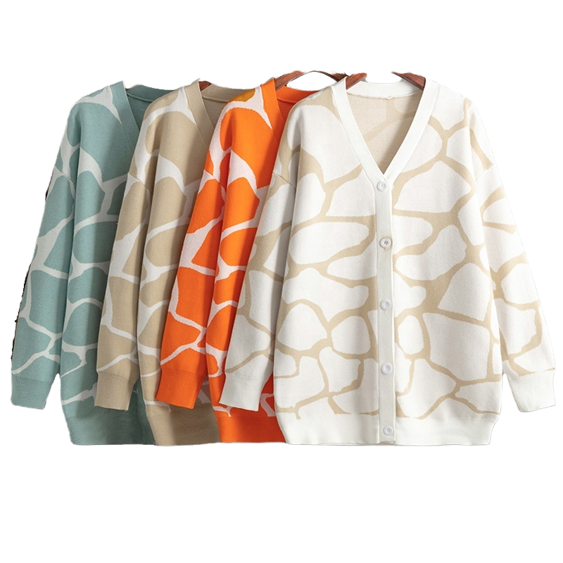 2024 Best-Selling Women's Single Breasted V-Neck Long Sleeve Knitted Print Cardigan Coat Autumn Winter Casual Loose Button