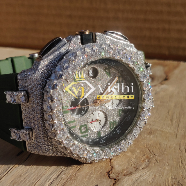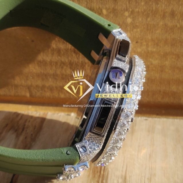 2024 Big Face Full Custom Luxury White Gold Leather Hip Hop Diamond Moissanite Mechanical Automatic Sports Watch for Men Women